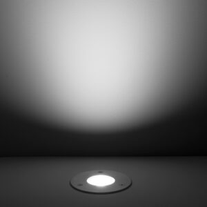 Inground luminaire, drive-over, suitable for outdoor and underwater environments up to 10 m (IP66/IP68), with operating temperature range: -20°C / +50°C. To provide maximum versatility of application, the body can be made of aluminum or steel; the frame, aluminum or steel. The light source consists of a single 3W power Led chip powered at 24V constant voltage with integrated driver. The luminous flux makes it ideal for marking pedestrian paths or illuminating architectural details. The source is recessed for greater visual comfort. Color rendering index CRI > 90. Oceano is equipped with IdroSkud® system to protect electronic components from voltage spikes, polarity reversal and water infiltration. There are optionals for anti-glare (honeycomb and louvre) and installation accessories (drive-over outercase). The product must be combined with a power supply to ensure its operation. The power supply must be ordered separately. The amount of luminaires that can be connected to a single power supply varies depending on the type of installation. It is up to the installer to verify the possible voltage drop by evaluating the distance between the product and the power supply.