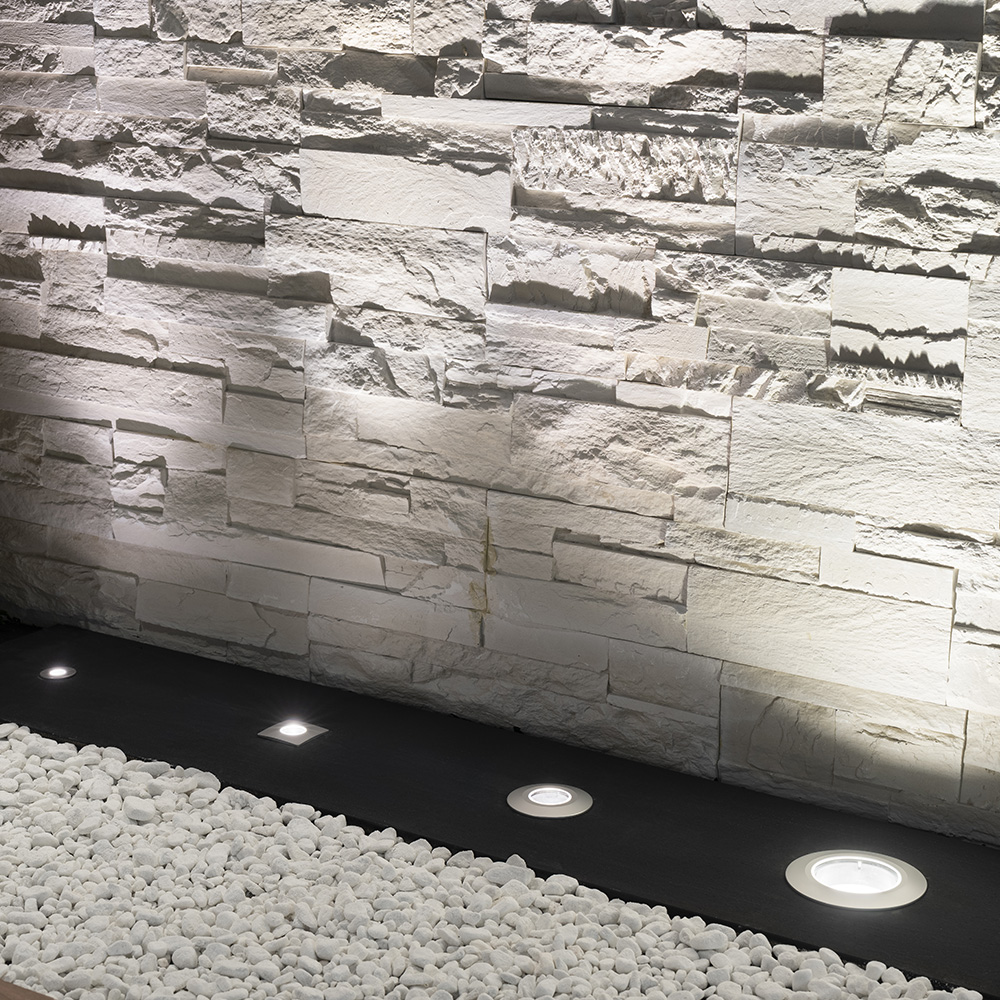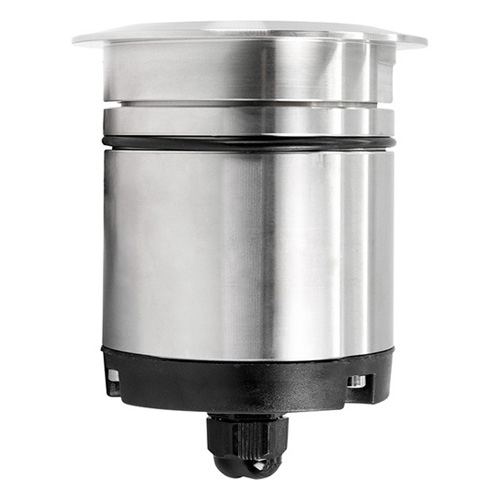 Inground luminaire, walk-over, suitable for outdoor and underwater environments up to 10 m (IP66/IP68), with operating temperature range: -20°C / +50°C. To provide maximum versatility of application, the body can be made of aluminum or steel; the frame, aluminum, steel or brass. The light source consists of a single 7W power Led chip powered at 24V constant voltage with integrated driver. The luminous flux makes it ideal for marking pedestrian paths or illuminating architectural details. The source is recessed for greater visual comfort. Color rendering index CRI > 90. Oceano is equipped with IdroSkud® system to protect electronic components from voltage spikes, polarity reversal and water infiltration. There are optionals for anti-glare (honeycomb and louvre) and installation accessories (draining and waterproof outercase and spring for ceiling attachment). The product must be combined with a power supply to ensure its operation. The power supply must be ordered separately. The amount of luminaires that can be connected to a single power supply varies depending on the type of installation. It is up to the installer to verify the possible voltage drop by evaluating the distance between the product and the power supply.