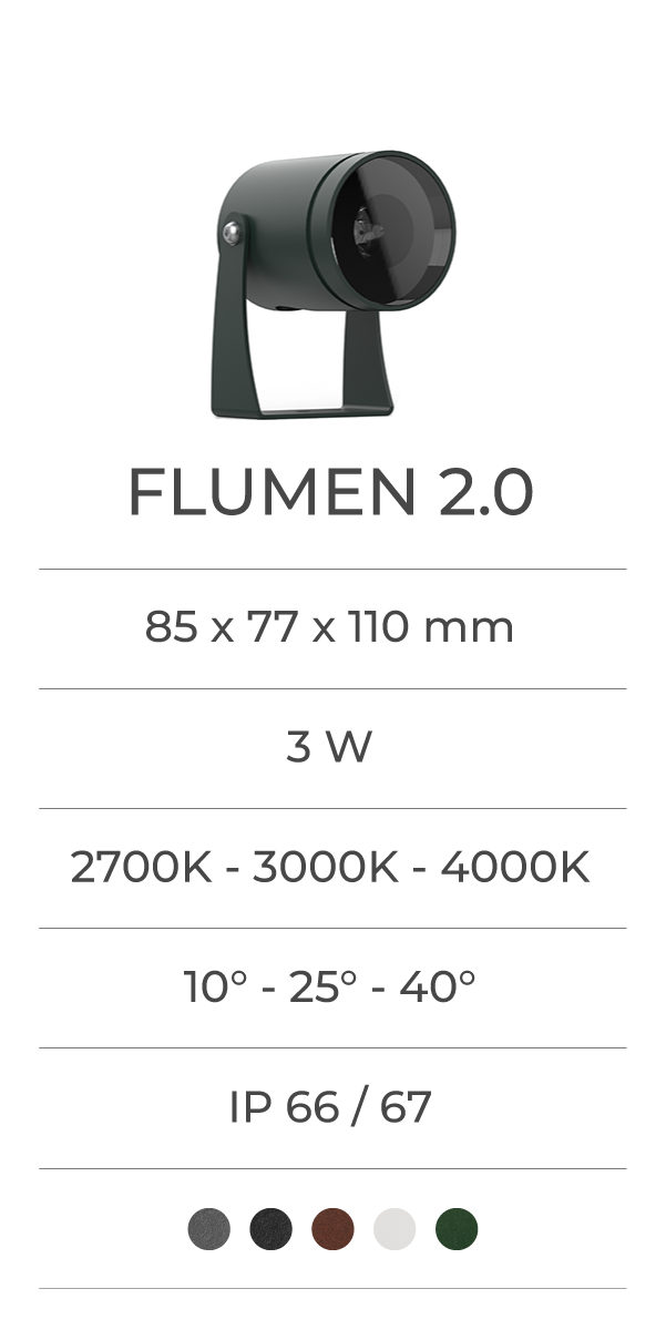 All FLUMEN can be equipped with narrow, medium or wide optics. Maximum lighting design flexibility.