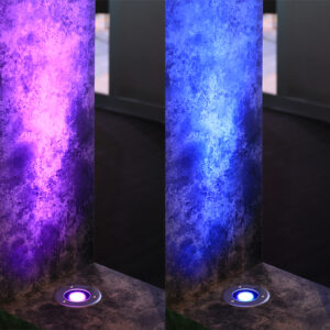 Apparecchio da incasso a terra, carrabile, adatto agli ambienti esterni (IP66/IP67), con range di temperatura di esercizio: -20°C / +50°C. Per ridurre il peso e garantire resistenza all’usura, il corpo è in alluminio e la ghiera tonda in acciaio. La sorgente luminosa è costituita da un Multi-Chip RGBW alimentato a tensione costante, 24V, per potenza massima di 13W. L’alto flusso luminoso lo rende ideale per tracciare percorsi pedonali e carrabili o illuminare facciate e dettagli architettonici grazie all’ottica con lente TIR "color-mixing". La sorgente Led è arretrata per maggior comfort visivo. Acus è dotato di sistema IdroSkud® per la protezione dei componenti elettronici da picchi di tensione, inversione di polarità e infiltrazioni di acqua. Sono previsti optionals per l’anti-abbagliamento (nido d’ape) e accessori per l’installazione (cassaforma carrabile). Il prodotto deve essere abbinato ad un alimentatore per garantirne il funzionamento. L'alimentatore deve essere ordinato a parte. La quantità di apparecchi che possono essere collegati ad un singolo alimentatore, varia in base al tipo di installazione. Spetta all'installatore verificare la possibile caduta di tensione, valutando la distanza tra prodotto e alimentatore.