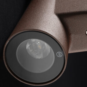 Apparecchio mono-emissione per montaggio a parete, adatto agli ambienti esterni (IP65), con ampio range di temperatura di esercizio: -20°C / +50°C. Il corpo è in alluminio pressofuso protetto da verniciatura epossidica in poliestere che garantisca una resistenza alla corrosione pari a 1500 ore in nebbia salina. La sorgente luminosa è costituita da un singolo chip Power Led da 3W alimentato a 220Vac (alimentatore integrato). Il flusso luminoso e il design distintivo lo rendono ideale per illuminare facciate e dettagli architettonici. Indice di resa cromatica CRI > 90. È previsto optional per l’anti-abbagliamento (nido d’ape).
