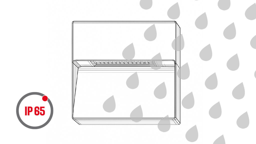 I FORMA sono totalmente protetti contro l’ingresso di qualsiasi tipo di povere (IP 6X). I prodotti sono anche testati contro i getti d’acqua (IP X5). 12,5 litri al minuto, con una pressione di 30 kPa, ad una distanza di 3 m.