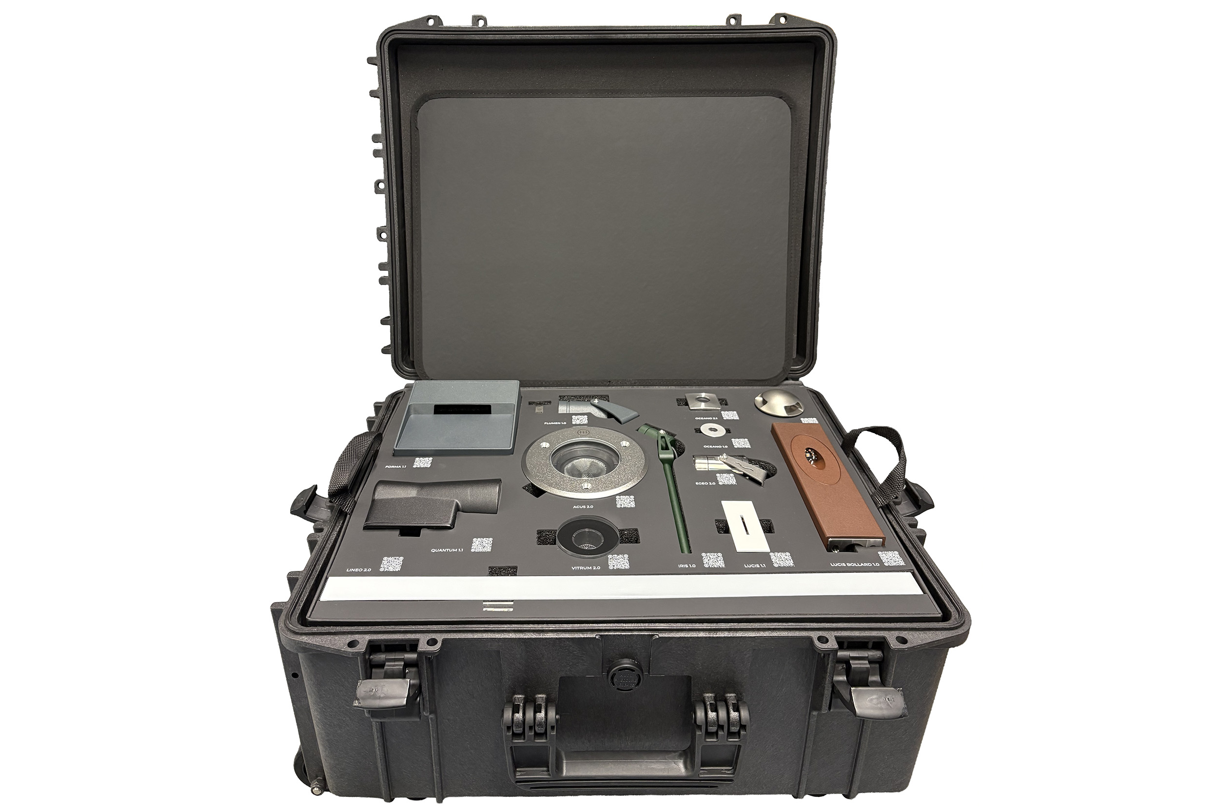 La valigia campioni MIZAR è uno strumento di presentazione compatto ed elegante, progettato per valorizzare al meglio l’identità del brand e la qualità dei suoi prodotti di illuminazione.